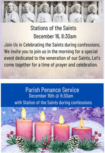 December 16th @ 8:30am with Stations of the Saints during confessions